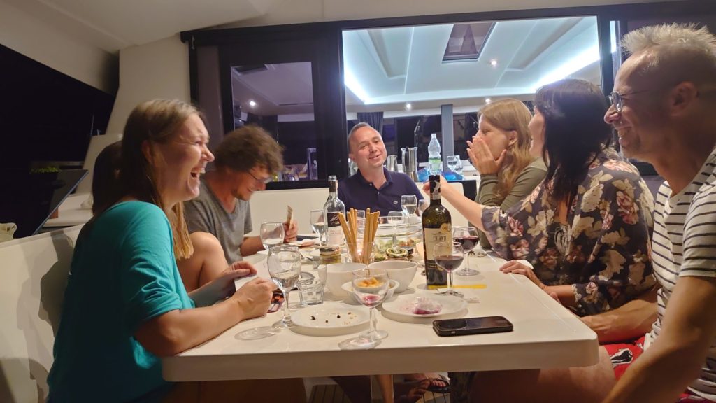 Na rejsie również została zdefiniowana nowa pora dnia: „powiem Ci jak wstanę” Czasami odnoszę wrażenie, że rejsy jachtem są czymś więcej, niż czystą formą hedonizmu i lenistwa;-) Że przyjmują pewnego rodzaju formę warsztatów rozwojowych dla jego uczestników. Może nie wszystkim jest z tym po drodze, ale ta ograniczająca nas przestrzeń, bliskość i brak możliwości ucieczki powodują ,że w przyspieszonym tempie odbywamy szkolenie z rozwoju osobistego czy budowaniu relacji interpersonalnych. Jeśli teraz zadajesz sobie pytanie, czy taki rejs jest dla Ciebie? To powiem tak, nie dowiesz się, dopóki nie spróbujesz 😉